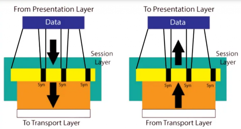 Tầng 5: Tầng phiên (Session Layer): Đây là lớp chịu trách nhiệm mở và đóng giao tiếp giữa hai thiết bị. Khoảng thời gian từ khi giao tiếp được mở đến khi đóng được gọi là phiên. Lớp phiên đảm bảo rằng phiên mở đủ lâu để truyền tất cả dữ liệu được trao đổi, sau đó nhanh chóng đóng phiên để tránh lãng phí tài nguyên. Các chức năng quan trọng của tầng Phiên bao gồm: